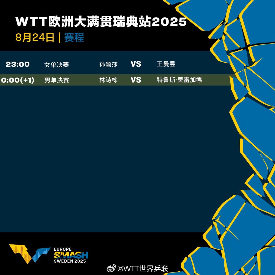 今晚决赛:孙颖莎对战王曼昱,林诗栋莫雷加德争冠